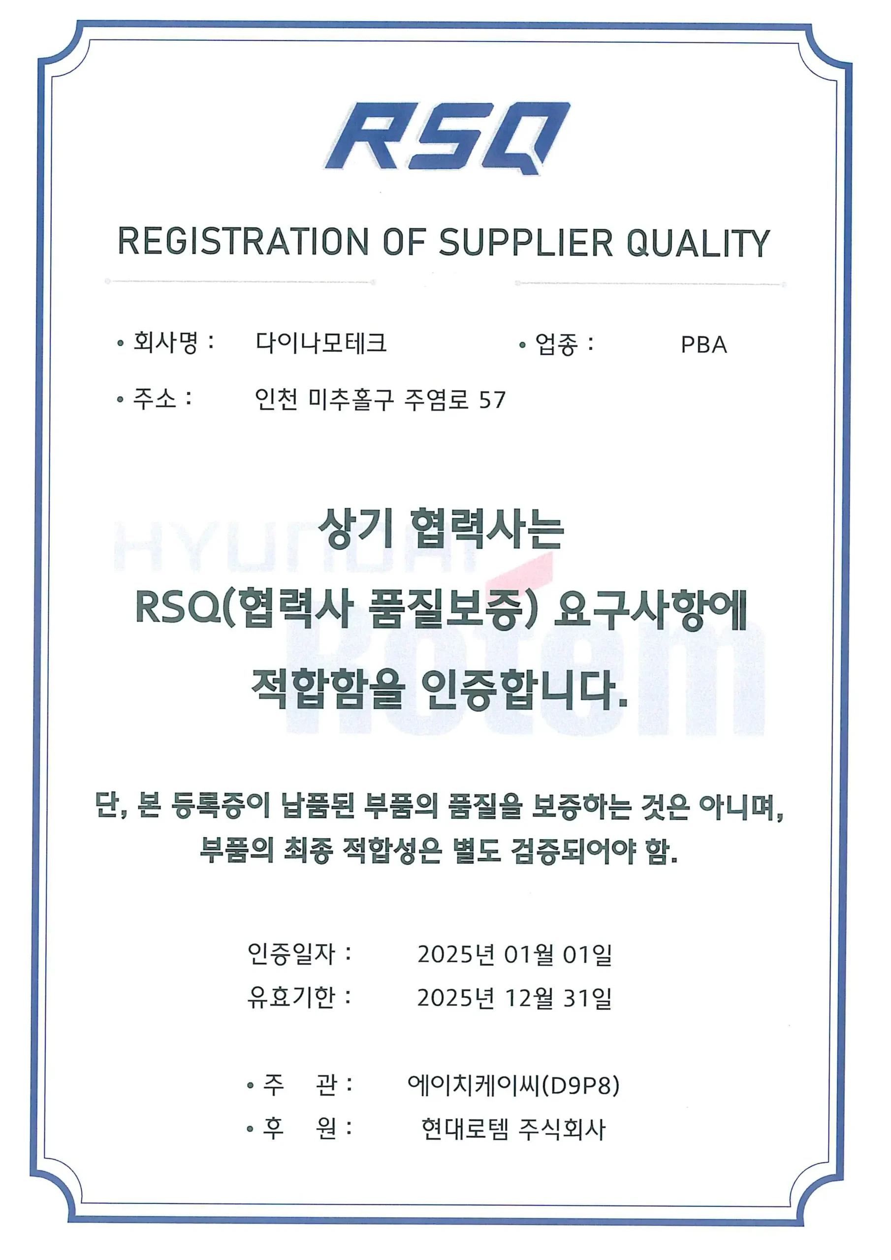국제 인증(ISO/TS16949)에 따른 글로벌 품질 관리 체계를 갖추고 있으며, 전 공정 추적과 검사 프로세스를 통해 문제를 신속히 대응하고 자동차 산업 표준에 맞는 완벽한 품질을 제공합니다.